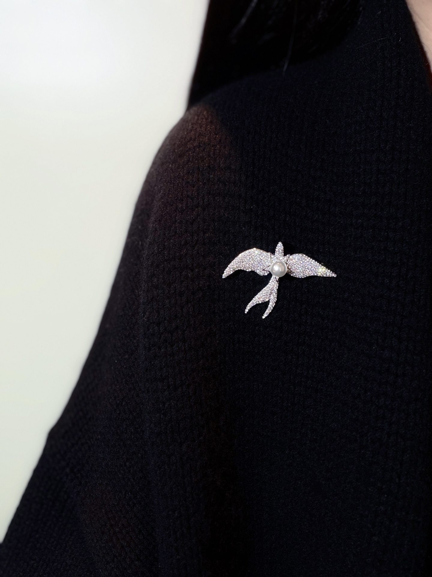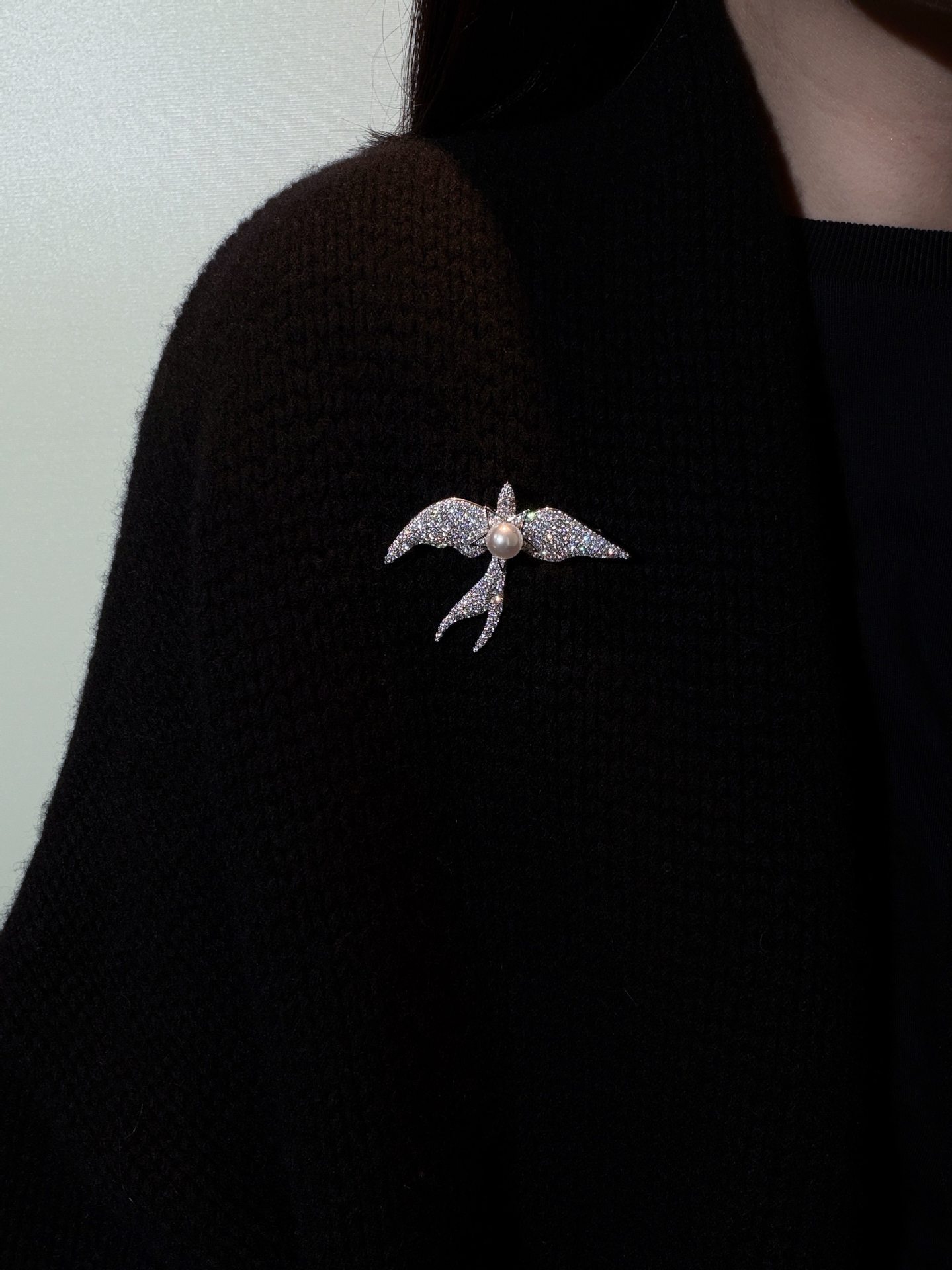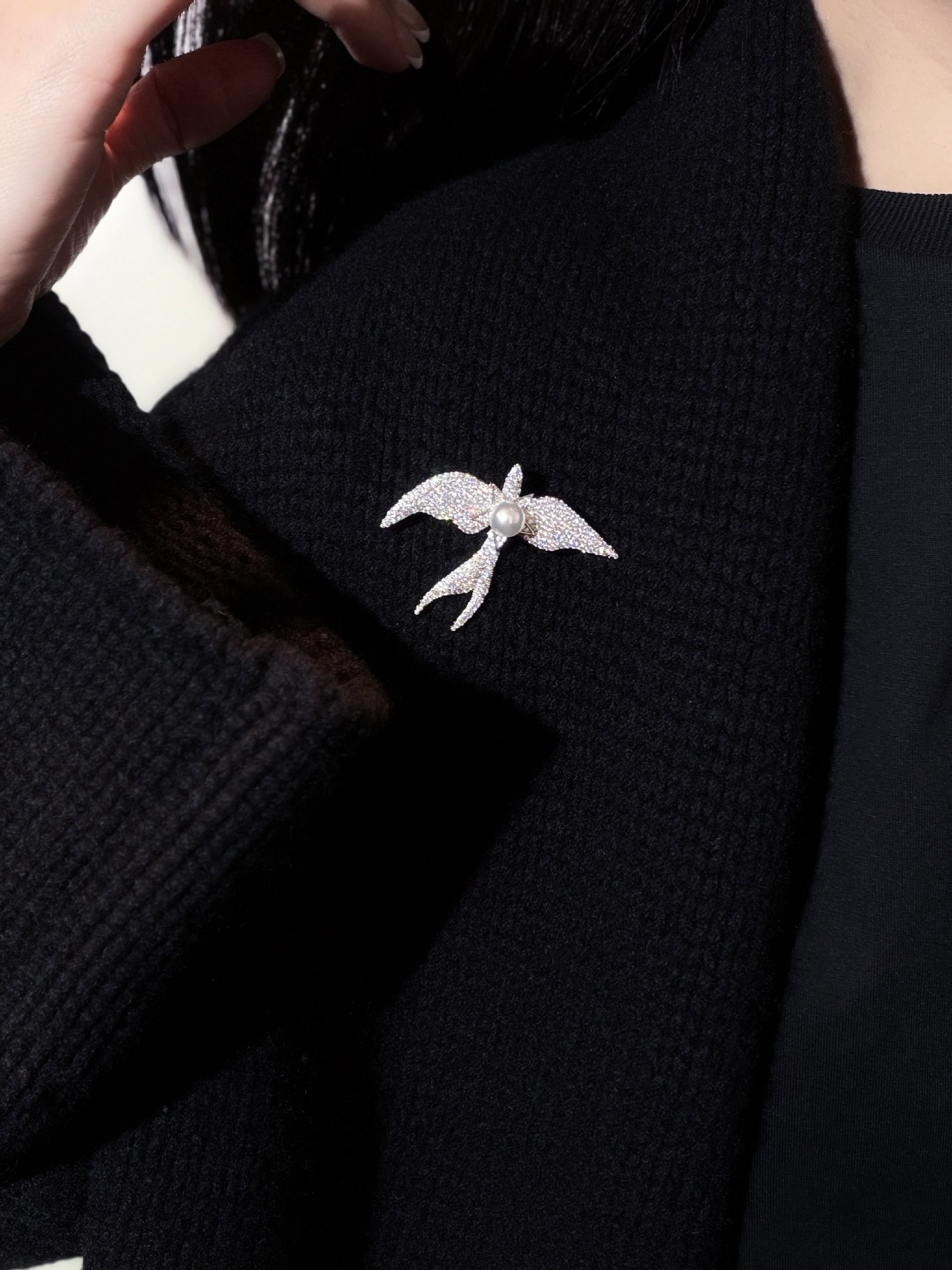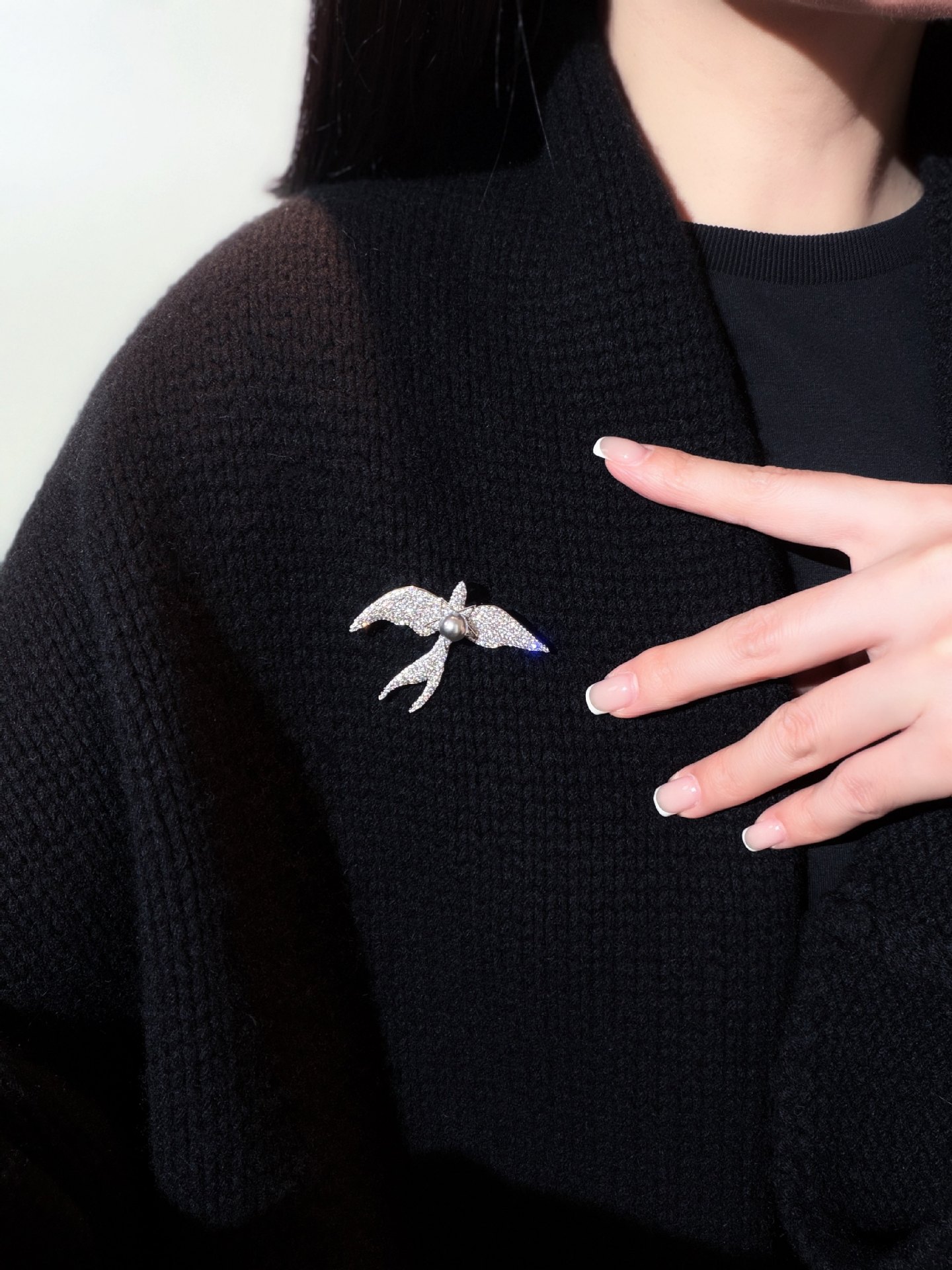 Pearl Full Diamond Bird Brooch Temperament Niche Sweater Brooch High-End Chest Flower
